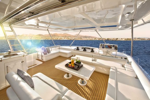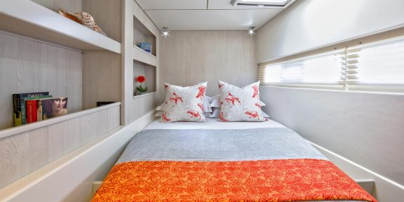 The Beyond Tiare is a firm favorite among guests for good reason. If you are looking to replicate the hotel room experience on your sailing vacation, then this is the yacht for you. This 62ft catamaran features so much interior space and feels so luxurious, you’ll almost forget you are floating on the water. That feeling of endless space isn’t just restricted to the inside of the Beyond Tiare, but extends to above the deck too. You’ll never feel on top of your fellow guests on Beyond Tiare. There are so many areas to choose to escape to for some peace and quiet and it’s ideal for a luxury crewed charter.