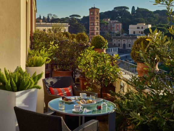 You will be accommodated in a Suite and its beautiful terrace overlooking the Colosseum (484 sq ft).