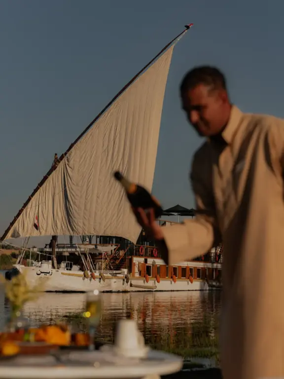 Today it remains one of the Nile’s most captivating sights: slender, low-slung, beautifully wood-clad and crowned with billowing sails. Designed for only 12 guests and offered exclusively for private charter, it can slip into places larger river cruisers simply can’t reach, turning each journey into a bespoke exploration. This is Nile sailing as it was meant to be.